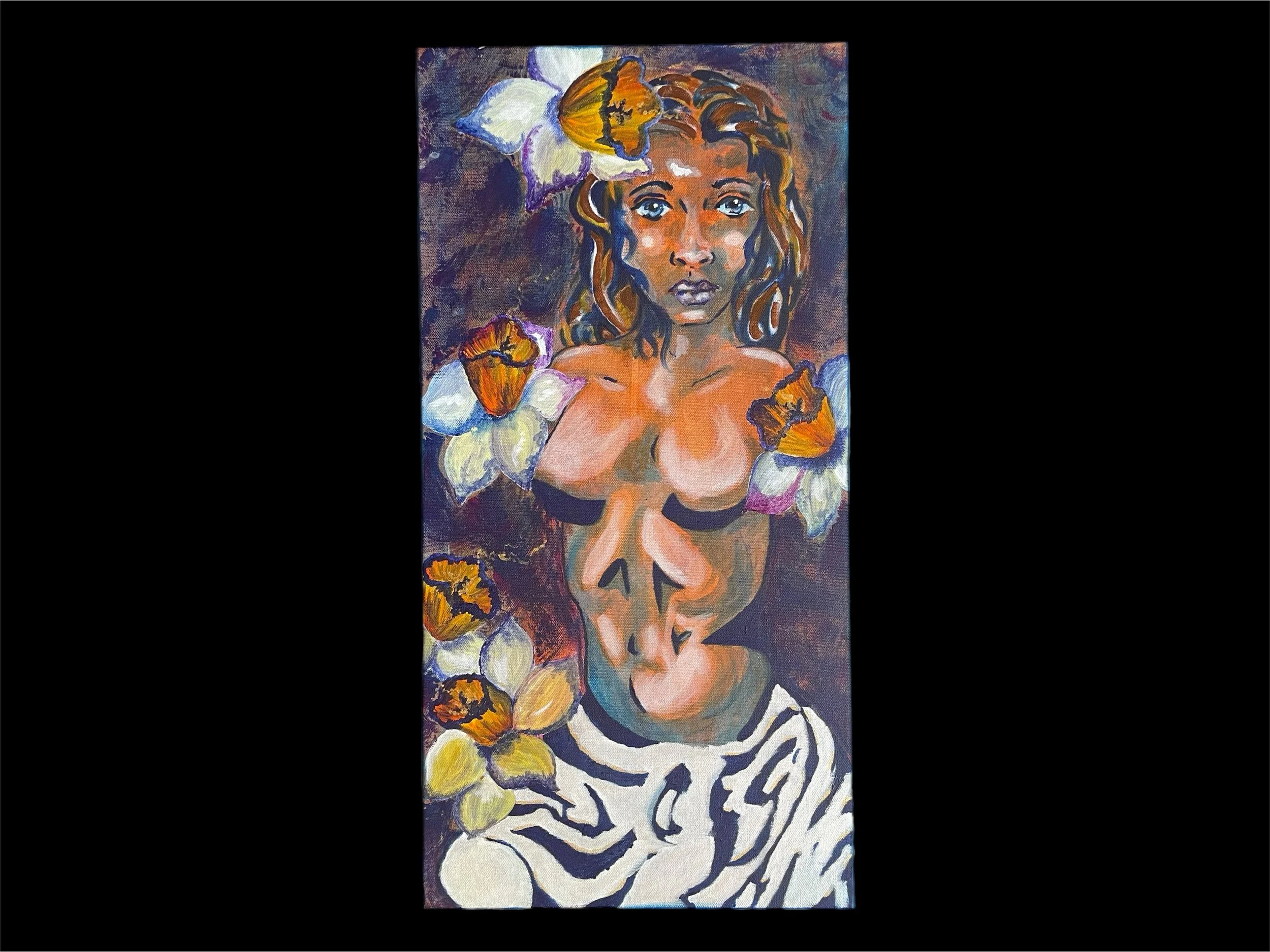 Captivating portrayal of Persephone amidst a field of narcissus flowers. Rather than simply showing the moment of her abduction by Hades, I chose to explore the nuances of Persephone’s experience before the abduction. Surrounded by the vibrant narcissus with the almost imperceptible sense of foreboding. The overall mood of idyllic beauty tinged with a subtle almost ethereal melancholy, hinting at the transformative journey that awaits her. Truly an evocative and unforgettable piece.