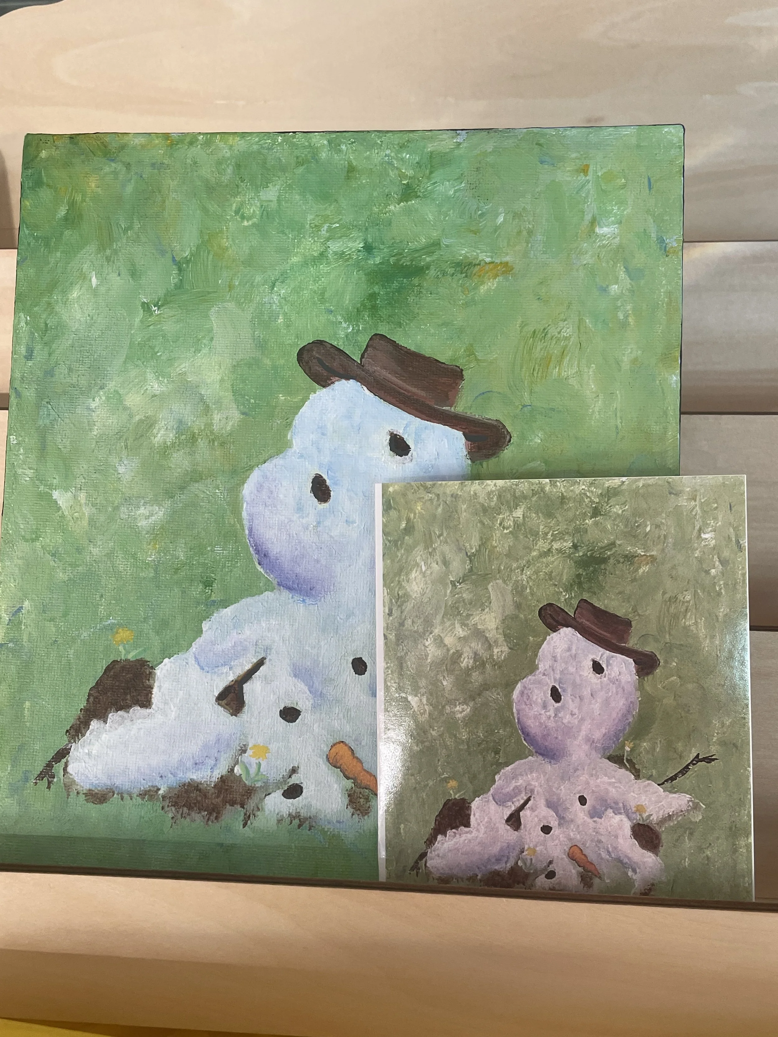 The Melting Snowman has a minor print error where the inside writing is upside down.